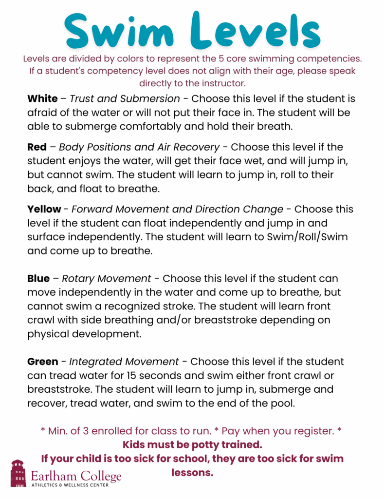 As an employee at Earlham, there are many times you’ll find We are offering swim lessons for children ages 4-13! Must be potty trained and no previous experience is needed.